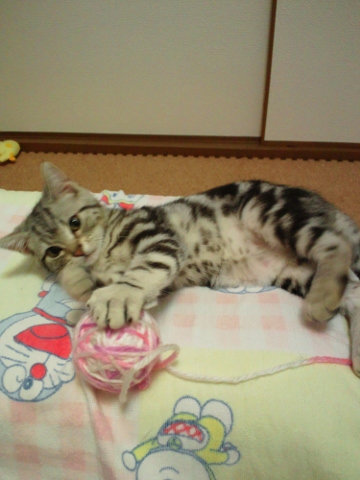 えへへ ぼくは 大人気の肩のりアメショー君です!