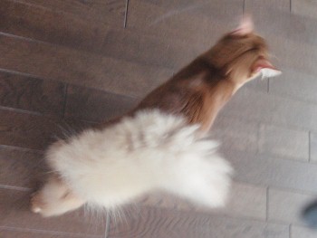 私は ママのパソコン仕事部屋で 2時間は走りまわってるのよー。