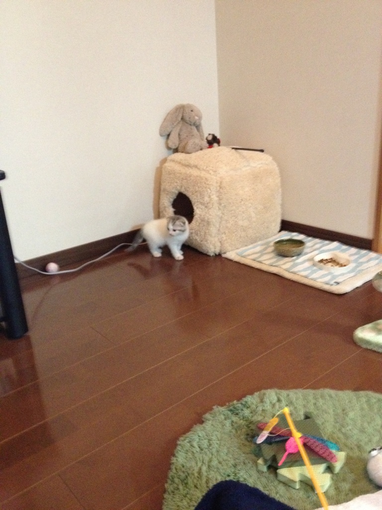 無事に京都到着し、うずらは家の中を探検中です(笑)
