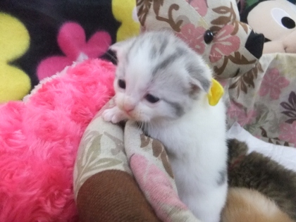 始めは赤ちゃんなので 折れ耳っぽくなっていました が